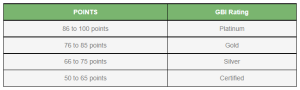 Points are obtained for each requirement and will be totaled up to secure the GBI rating based on the chart below: